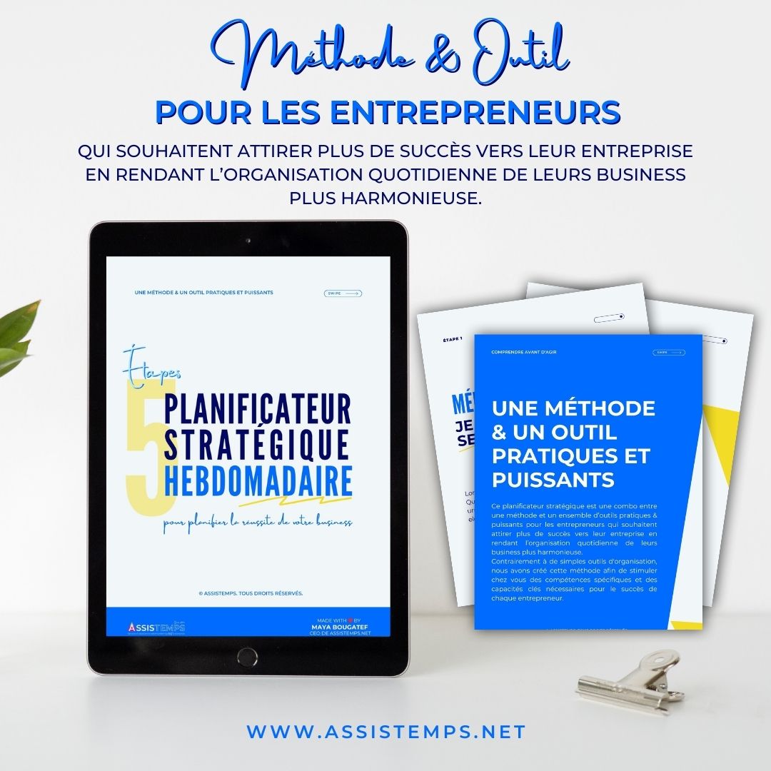 Investissez dans votre succès dès aujourd’hui ! Téléchargez votre guide maintenant et commencez à structurer votre réussite avec des outils concrets et inspirants. Et si vous avez besoin d’un coup de main supplémentaire, réservez une consultation avec Assistemps pour découvrir comment leur assistance peut transformer votre gestion du temps et faire passer votre business au niveau supérieur.